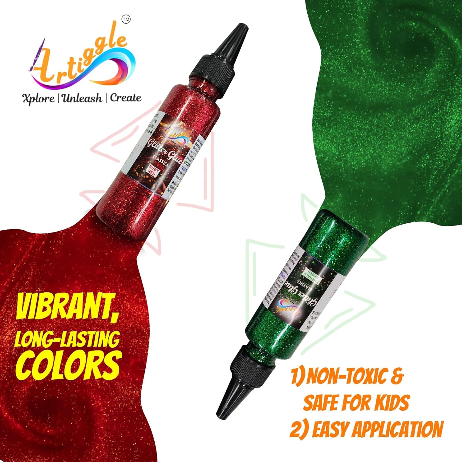 1. Material: Glitter Glue, Pack Contain 4 Colours of 40ml Bottle of glitter glue.
